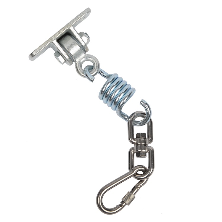 This product contains a cast iron fixing buckle, a spring, a rotating ring, a connecting buckle, and two matching screws,