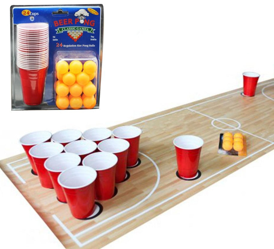 The whole set includes 24 large red plastic cups and 24 table tennis balls. The game is simple and easy to understand, so it is a must-have for family gatherings.