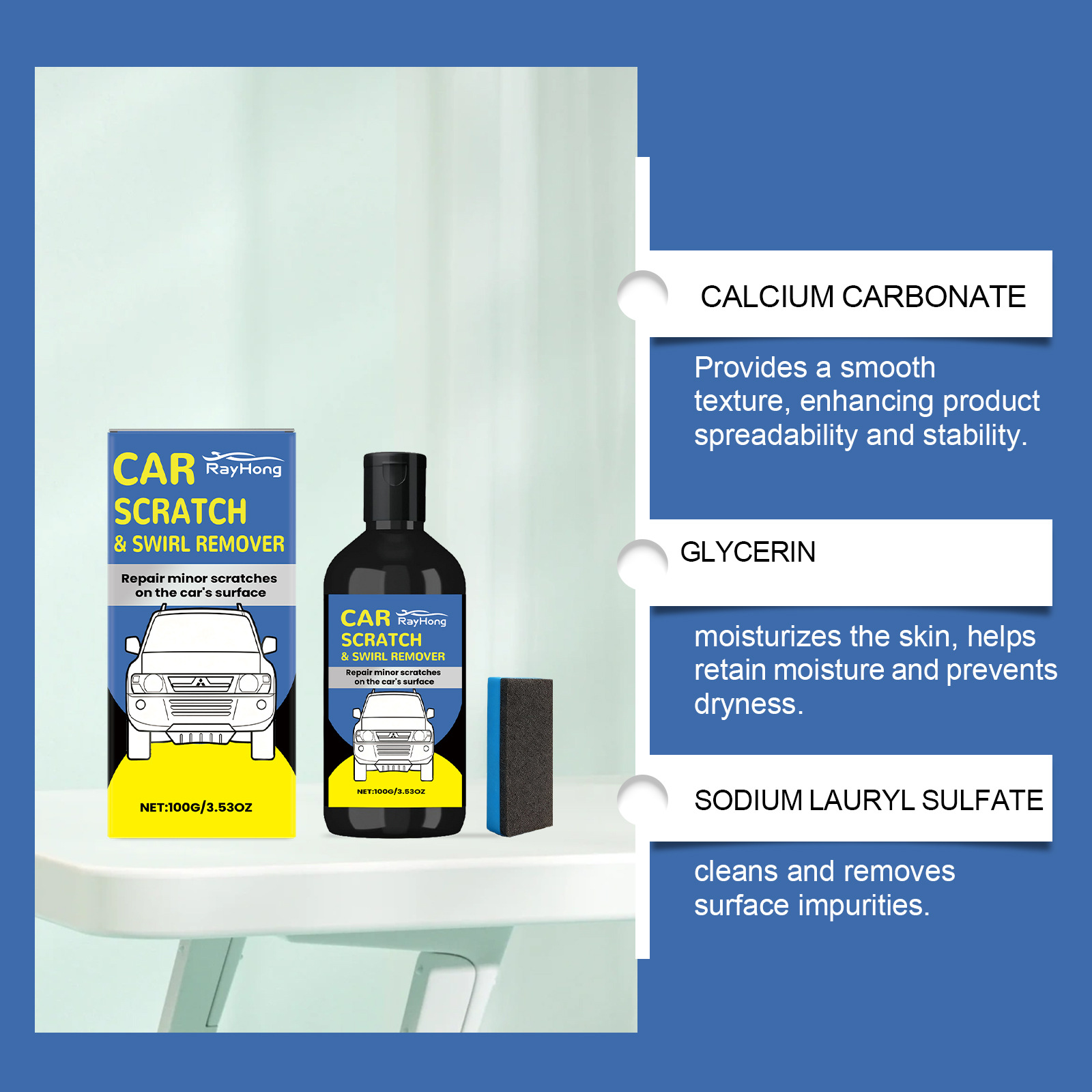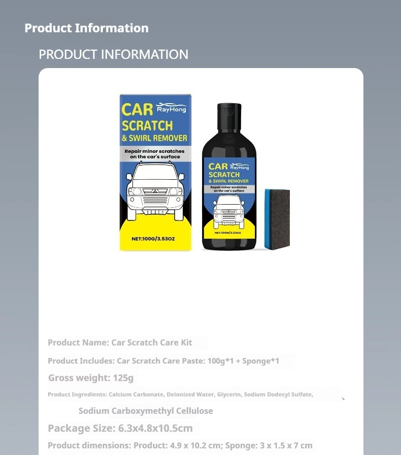 RAYHONG car scratch care cream: 100g*1, sponge *1.