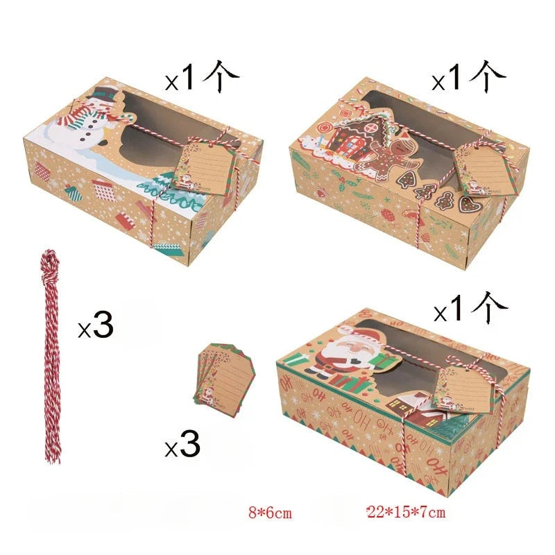 Christmas Gift Box Candy Cookie Santa Snowman Cartoon Kraft Paper Xmas Kids Bags New Year Event Party Supplies