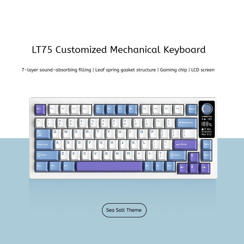 Color: LT75 Qingyue-macaron axis [three-mode connection] LCD color screen RGB light, LT75 sea salt-silver Jade axis [three-mode connection] LCD screen RGB light, LT75 Youling-smoky rain axis [three-mode connection] LCD screen RGB light, LT75 Youling-macaron axis [three-mode connection] LCD screen RGB light, LT75 shadow-silver Jade axis [gradient side carving] LCD screen (only for cross-border, domestic original price)