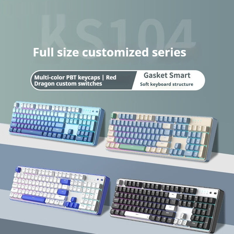 Color: 104 keys White Blue wired monochrome green wood shaft, 104 keys black white wired monochrome green wood shaft, 104 keys yellow purple blue wired RGB green wood shaft, 104 keys Purple Yellow Blue wired RGB fire red shaft, 104 key black white Three mode RGB fire red axis, 104 key white blue Three mode RGB fire red axis, 104 key gradient three mode RGB Hydra Zen Frost axis