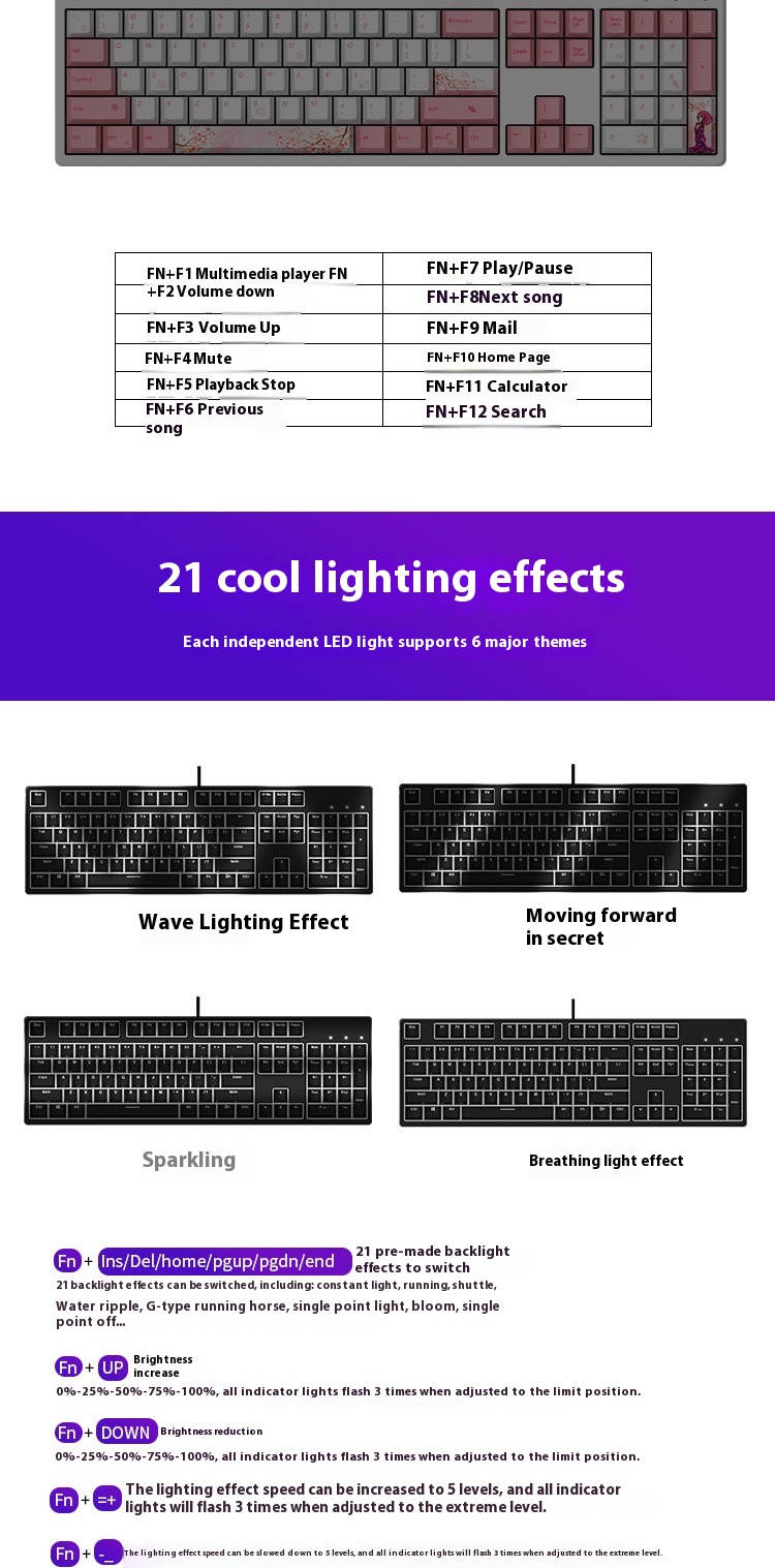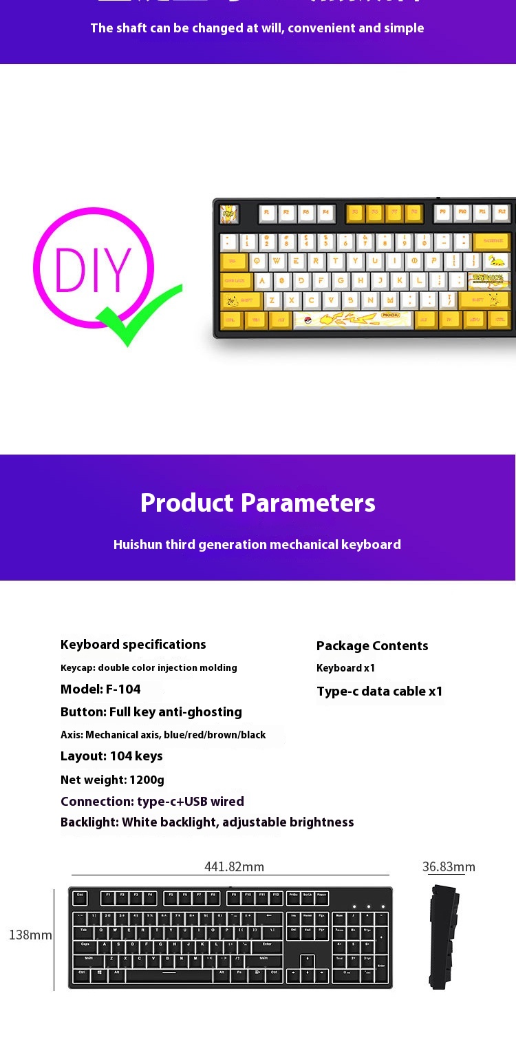 Package List: keyboard/data cable/key puller/shaft puller/spare shaft/cleaning brush