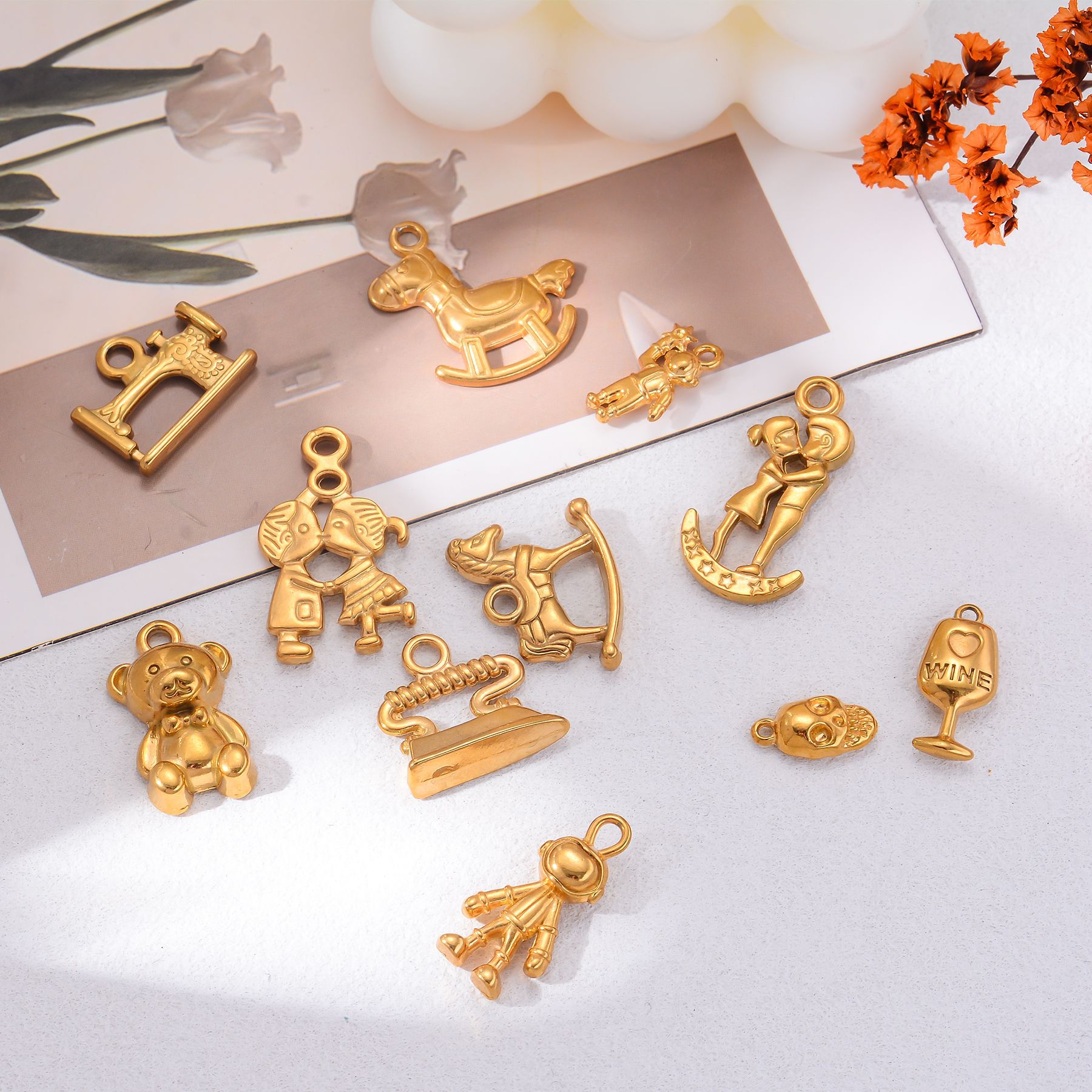 Colors: Little Figure 1, Heart-Shaped Cup, Skull, Little Bear, Iron, Sewing Machine, Moon Boy and Girl, Wooden Horse 1, Wooden Horse 2, Boy and Girl, Little Figure 2